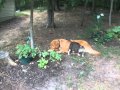 We were feeling guilty about her being outside in bad weather so we decided to bring her in the house.. but we have 5 large dogs.. Two like her but the other three will kill her at first chance. So we put her in a large dog crate with litter box, bed, food and water and she's quite content. But she is not getting the proper exercise and fresh air so we have to put her out during nice days... but she's not out but 10 min and she's back at the door trying to get in.. and the dogs trying to get her.