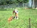 Pilar adores kids! She is great with the kids. She is house trained. She is very loyal. Knows how to sit. She sleeps at the foot of our 5 year olds bed. Despite being 7, she still plays in the yard. She even climbs up the ladder to the kids playhouse and sits on the little porch with them..and then goes down the slide or ladder! She is very soft.